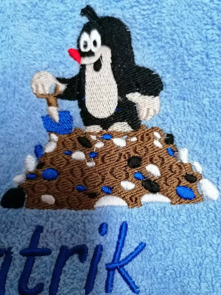Možnosť rôznych mien. Pri objednávaní si môžte zvoliť aj farbu výšivky. Poprípade môžte zmeniť aj obrázok (žabka, vláčik, báger,....).